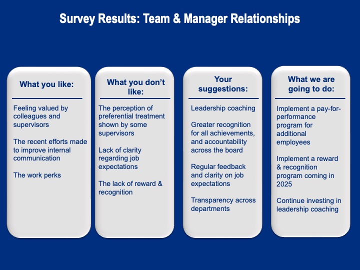This is your opportunity to ask questions and provide genuine feedback. We value your opinions and look forward to hearing what is on your mind! Questions and feedback are confidential - only Morgan and Katie will have access.