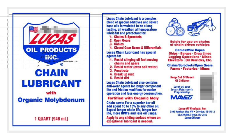 Lucas Chain Lubricant was developed to be a long lasting, all weather, all temperature lubricant and protectant for chains, sprockets, cables and open gears. It is water resistant and contains Moly for extreme pressure situations. It should be applied to any nuts, bolts or components that are subject to long term exposure.