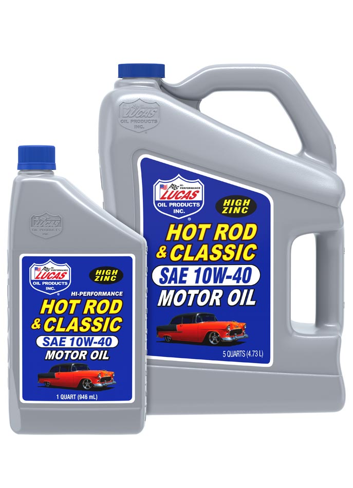 Lucas Hot Rod & Classic Car Motor Oil SAE 10W-40 is for muscle, showroom, classic and trophy cars without catalytic converters. It can be used in racing applications. Not recommended for passenger car use.