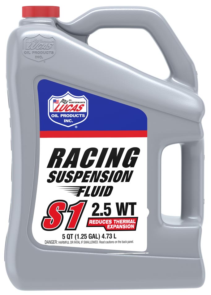 Lucas Oil Products developed S1 Racing Suspension Fluid to provide exceptional viscosity stability, anti-friction and anti-foam properties for use in all high performance suspension systems. Applications include off road racing shocks, motocross, supercross, conventional and upside down forks, circle track racing and more. Lucas specially formulated friction modifiers increase lubricity for minimum friction and for more responsive handling. Guaranteed to improve a narrow, consistent, rebounding range and easy suspension tuning.