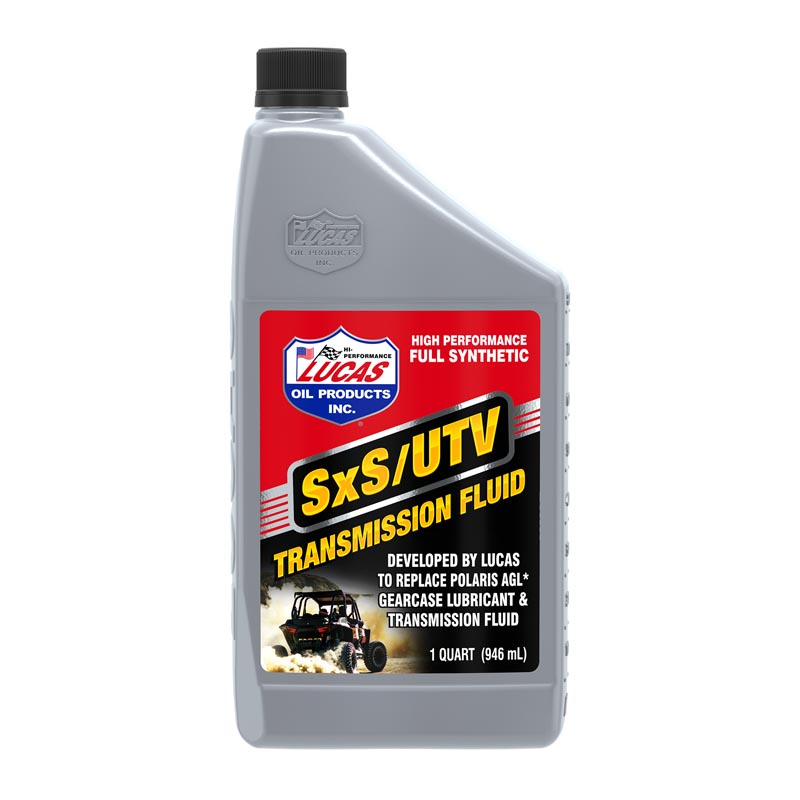 Lucas SxS Transmission Fluid is blended from premium synthetic base oils only (API Groups III & V), combined with shear stable synthetic polymers, a high-quality additive package that includes anti-wear, anti-oxidants and corrosion inhibitors to produce a truly superior SxS transmission fluid. Lucas SxS Transmission Fluid was designed specifically to meet the requirements of Polaris vehicles’ Transmissions/Gearcase, including ACE, Sportsman, Ranger and RZR* and may be used safely as a substitute for AGL.